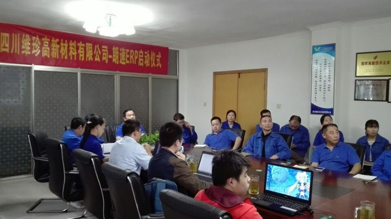 2016年9月18日下午,四川維珍高新材料有限公司ERP項目啟動大會在公司會議室召開。公司領導、中層干部、項目參與人員及項目合作方成都朗速科技有限公司領導及技術人員參加了會議。
